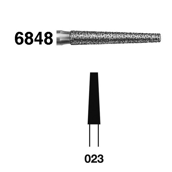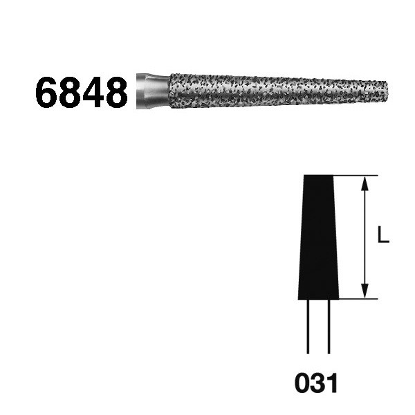 6848.314 Fresa Diamante Turbina 1 Unidad. Fresa de diamante cónica alargada con hombro y grano grueso. Para uso en turbina (FG). 1 unidad