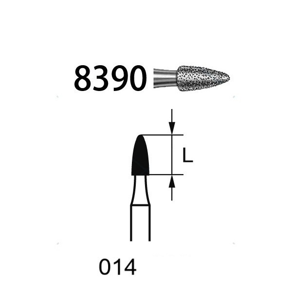8390.314. Fresa Diamante Turbina 1 Unidad. Fresa de diamante con forma de bala. Para uso en turbina (FG). 1 unidad