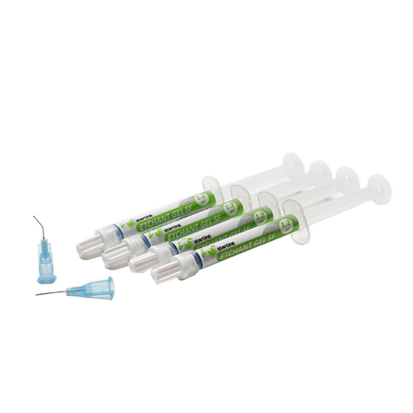 Ácido Grabador Azul 37% Starline 4 Jeringas x1,2ml. Gel grabador con ácido fosfórico al 37%. Para el grabado ácido de dentina, esmalte y cemento de ionómero de vidrio.