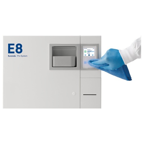 Gracias a la innovadora función E-Timer puede programar el comienzo de los ciclos de esterilización y los test en el horario que desee, lo que le permite ahorrar tiempo y empezar la jornada laboral a pleno ritmo. E8 cuenta con la posibilidad de guardar todos los ciclos de esterilización en una tarjeta SD, que permite transferirlos a un PC. Además, E8 permite integrar dos tipos distintos de impresoras, según las necesidades, para ahorrar tiempo con toda seguridad.
