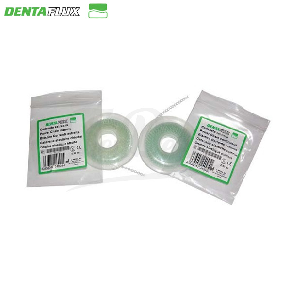Cadeneta Ortodoncia Dentaflux. Ligaduras en cadeneta para aplicaciones de ortodoncia. Separación: Estrecha o continua. Color: Transparente o Gris.