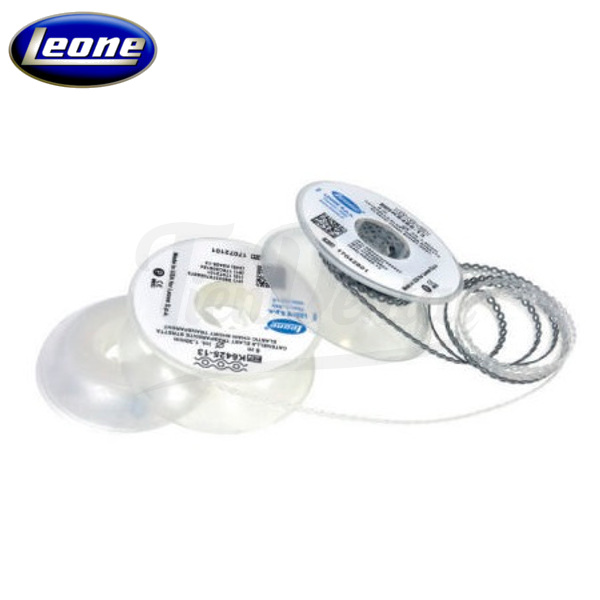 Cadenetas elásticas para ligaduras Leone. formatos: Ancha, Estrecha y Extra estrecha. Diám.int.: 1,3 mm.Colores: Transparente y Plata.