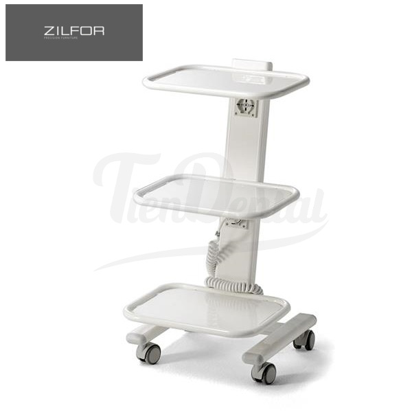 Carrito Móvil 3 Estantes C3R Electrificado Zilfor. Fabricado en acero esmaltado de color blanco, con 3 estantes y 3 tomas eléctricas.