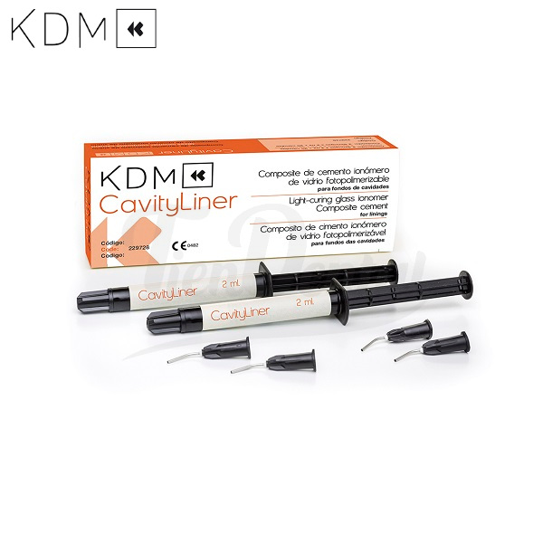 Cavityliner KDM 2 jeringas x 2 ml+20 puntas. Composite de cemento ionómero de vidrio fotopolimerizable para fondos de cavidades.
