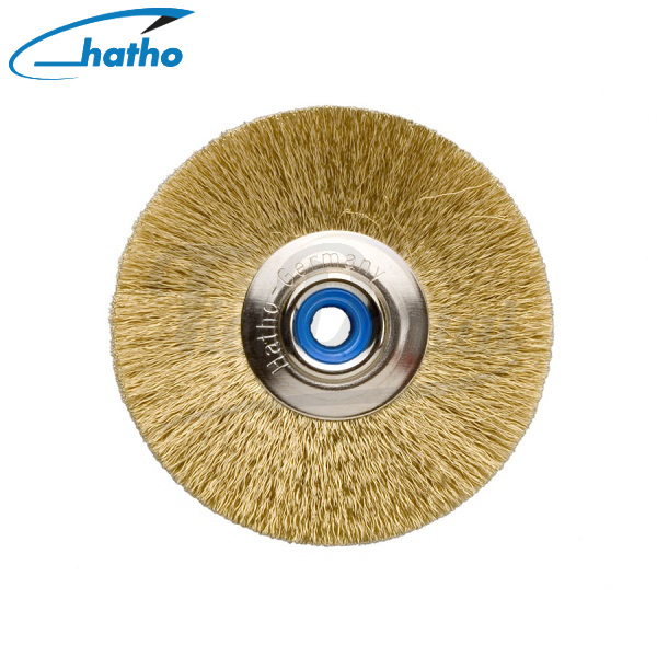 Cepillo de latón 143 Hatho. Fabricado en hilo de latón ondulado. Indicado para el desbaste, pulido y satinado de todo tipo de metales.