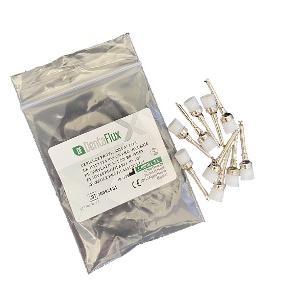 Cepillos profilaxis Nylon Dentaflux. Fabricados en nylon y para utilizar en contra ángulos .Con la dureza adecuada para una limpieza óptima sin dañar los dientes.
