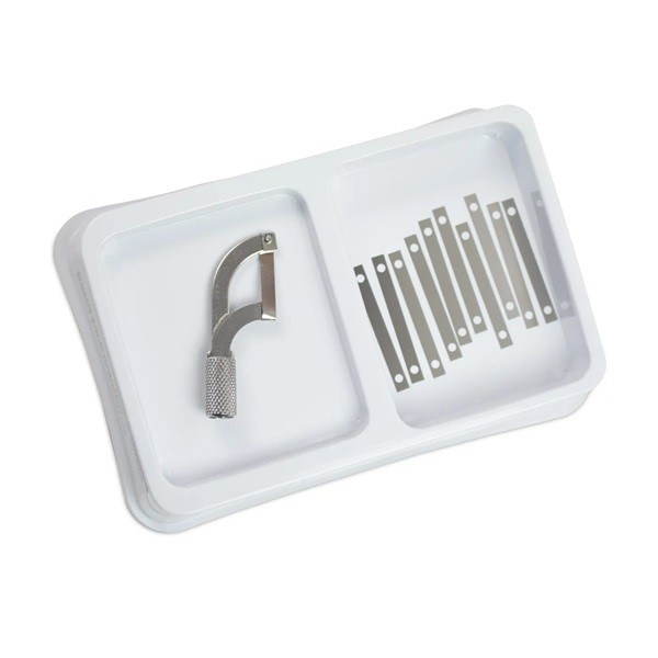 Es una sierra interproximal de mano especialmente diseñada para eliminar el exceso de composite en las áreas de contacto, utilizando una o ambas manos.