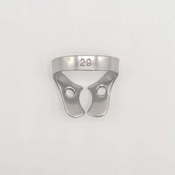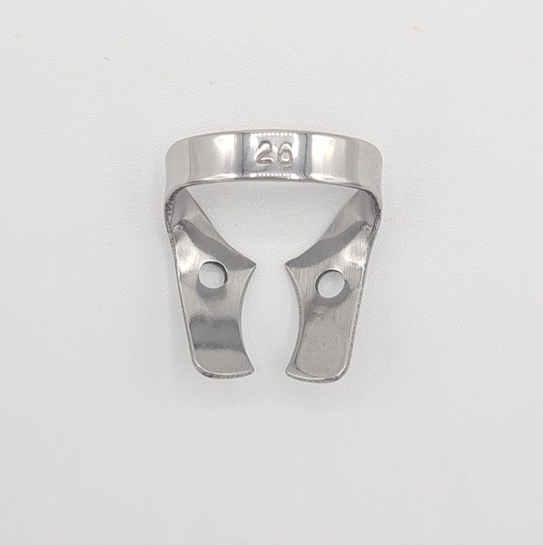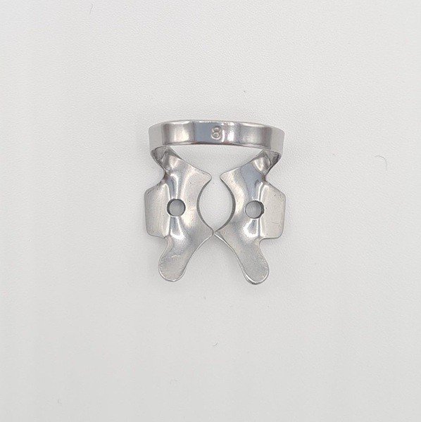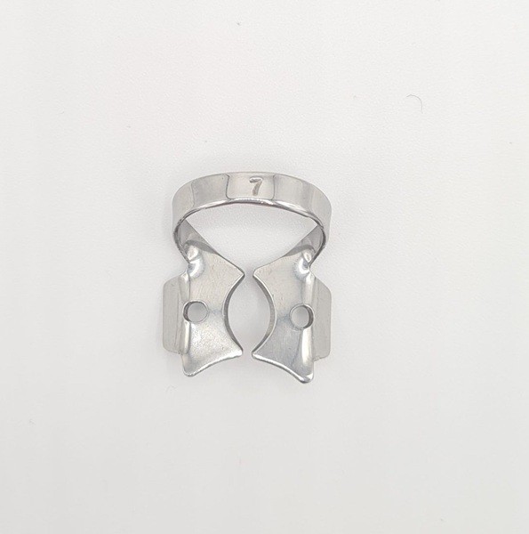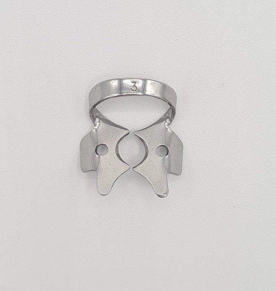 Para la aplicación de los clamps con alas, coloque en primer lugar el clamp de forma intraoral y a continuación extienda el dique dental sobre el clamp y el diente.