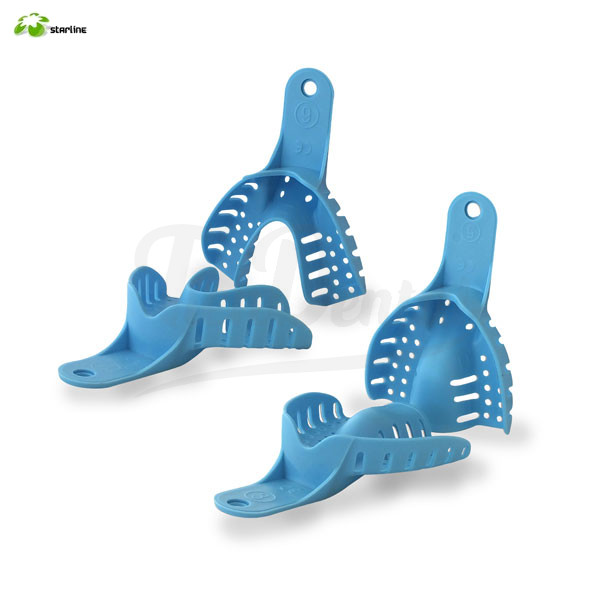 Cubetas Impresión Plástico Starline. De plástico rígido perforado, con una anatomía perfecta y de color azul. Bolsa de 10 cubetas.