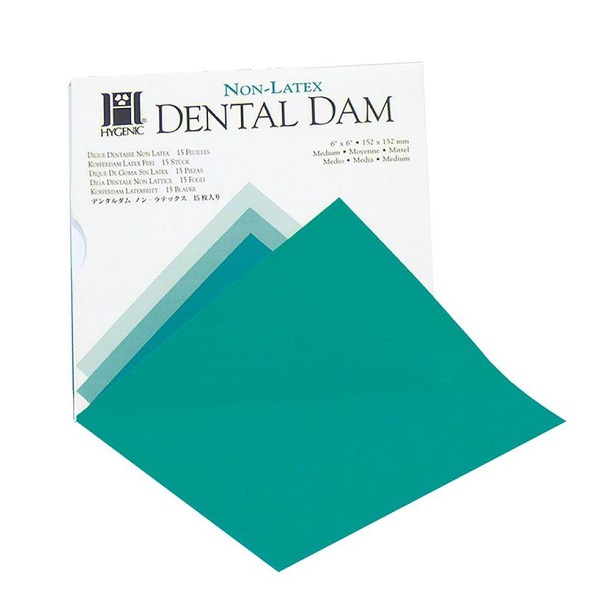Dique sin latex Hygenic Medio 15 uds Dique de goma 100% sin latex resistencia al desgaste similar al dique de goma natural. Refleja el color.