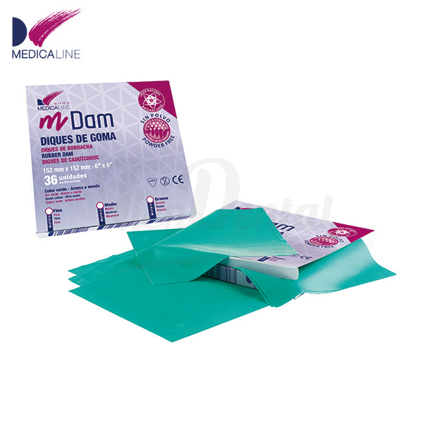 Diques de goma Medicaline.Fabricados en látex natural.De elevada elasticidad, por lo que permiten una rápida y cómoda colocación. 36 unidades.