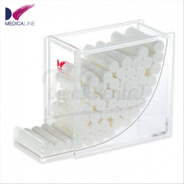 Dispensador Rollos Algodón Medicaline. Envase para depositar cómodamente los algodones en rollos. Fabricado en metacrilato.
