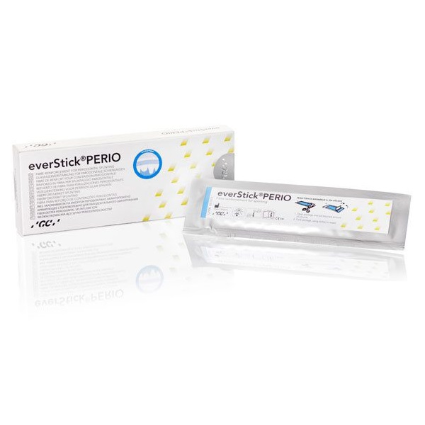 everStickPERIO es un conjunto de fibras de vidrio unidireccionales y preimpregnadas, indicadas para ferulizaciones mínimamente invasivas y seguras de dientes con movilidad.