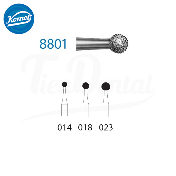 Fresa Diamante Bola 8801.204.018 Komet para Contra Ángulo 1 Ud. Fresa de diamante con forma de bola y grano fino. Para uso en contra ángulo.