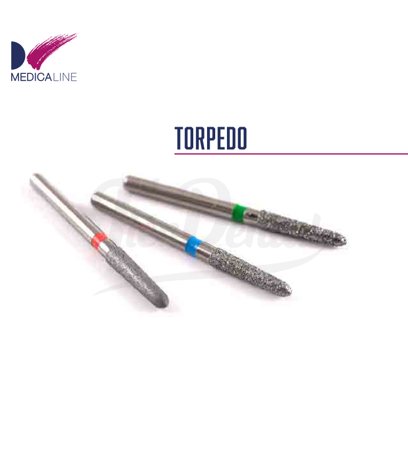 Con forma de torpedo cónico. Esta forma está indicada para la preparación de prótesis.