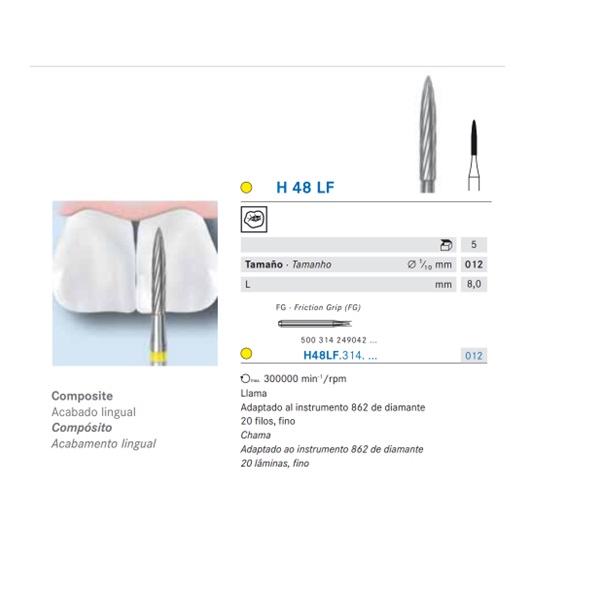 Fresa H48LF.314.012 Acabado de Composite Fresa Milhojas Komet 5 uds Adaptado al instrumento 862 de diamante.