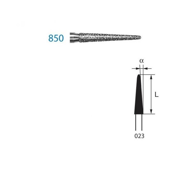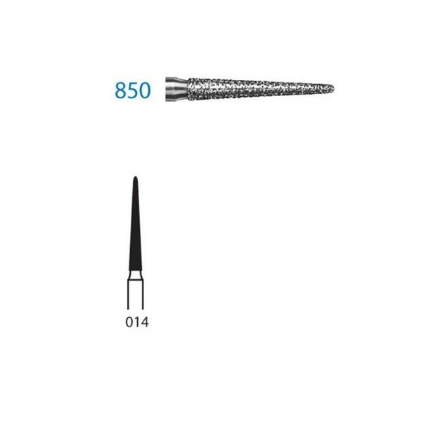 Fresa Turbina Diamante Cónica alargada 850.314 Komet 1 Ud. Fresa de diamante con forma cónica alargada y grano medio. Para uso en turbina (FG). 1 unidad.