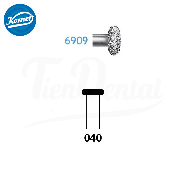 Fresa Turbina Diamante Rueda 6909.314.040 Komet 5 Uds. Fresa de diamante con forma de rueda y grano grueso. Para uso en turbina (FG). 5 unidades.