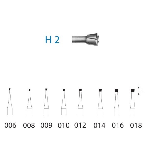 Fresa Turbina H2 Carburo Tungsteno Cono Invertido Komet 5 Uds. Con forma de cono invertido. Uso en turbina (FG). Pack 5 unidades.