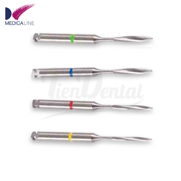Fresas para postes m-Post Medicaline. Diámetros disponibles: Ø1,00 mm, Ø1,20 mm, Ø1,40 mm y Ø1,60 mm. Se suministran por unidad
