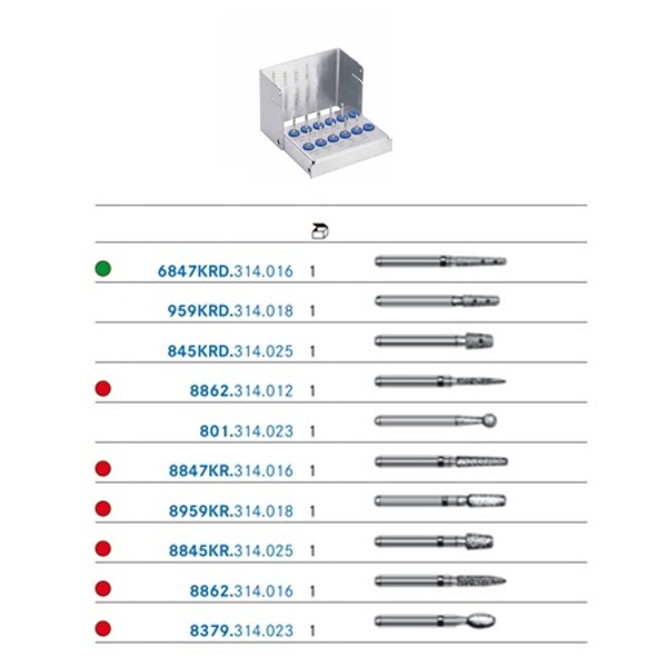 Fresero Komet 4562ST.314 para Inlays. Set de fresas para Inlays y coronas parciales en cerámica