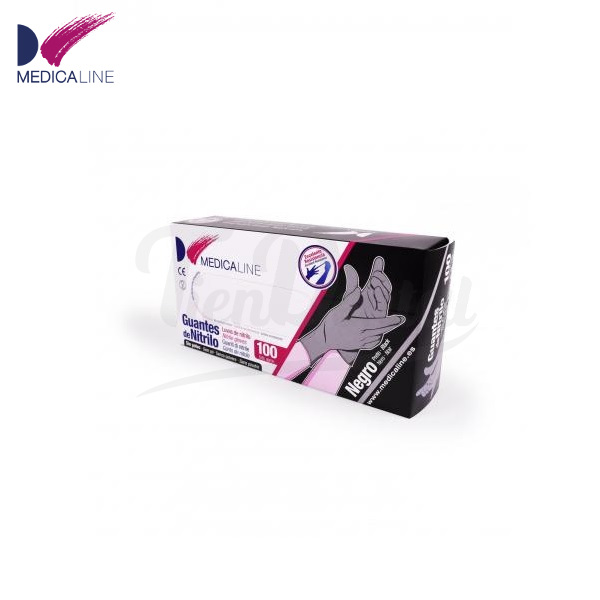 Guante nitrilo negro Medicaline. Caja de 100 unidades de guantes de nitrilo negro.
