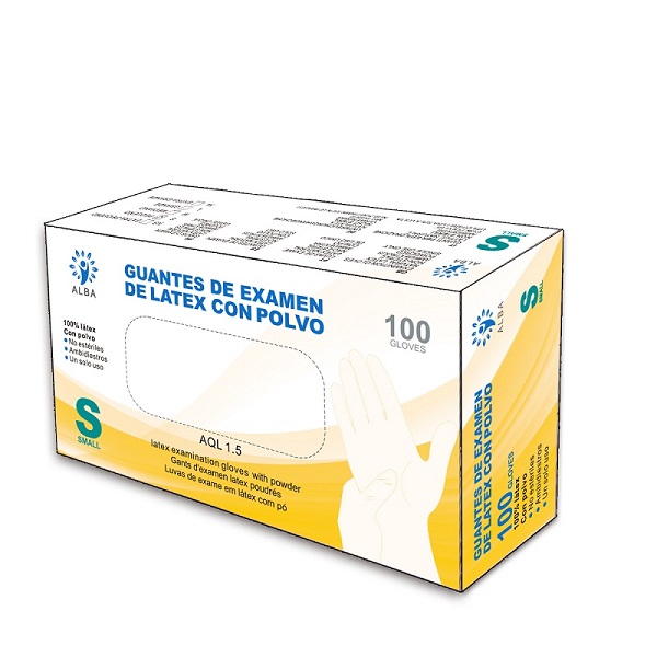 Guantes de látex con polvo 100uds 100uds. Látex natural. Con polvo. Ambidiestros. No estéril. Caja 100uds