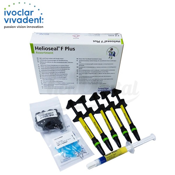 Helioseal F Plus Surtido Sellador Fisuras Ivoclar Vivadent 5 x 1,25g. Sellador de fisuras con liberación de flúor fotopolimerizable de color blanco.