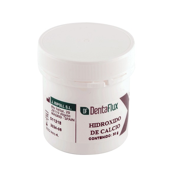 Hidróxido de calcio polvo Dentaflux.Sustancia que tiene la propiedad de generar dentina secundaria.Se utiliza para el sellado de conductos.
