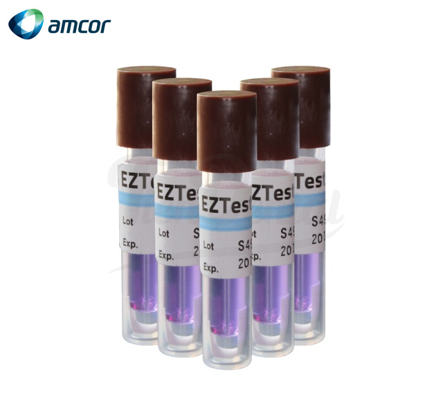 El EZTest contiene esporas bacterianas sobre un portador de papel de filtro empacado dentro de un tubo de cultivo termoplástico pequeño. Dentro del tubo de cultivo termoplástico hay un ampolla de vidrio sellada con medio de cultivo de digestión de la caseína del poroto de soja formulado especialmente que contiene un indicador de color que cambia drásticamente a amarillo cuando crecen esporas.