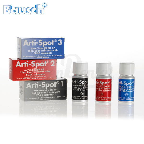 Arti-Spot® es un líquido de color indicador de contactos para el ajuste preciso de coronas, inlays, onlays, prótesis removibles, coronas telescópicas, retenciones así como superficies de fricción de ajustes de precisión.