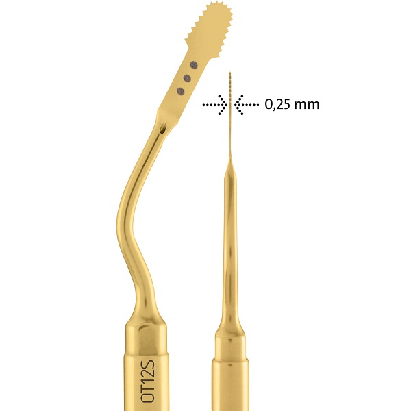 Inserto OT12S Microsierra Circular 0,25 mm Mectron. Dedicado a las técnicas de osteotomía en las que las sierras para huesos piezoeléctricas estándar pueden tener un abordaje quirúrgico difícil.