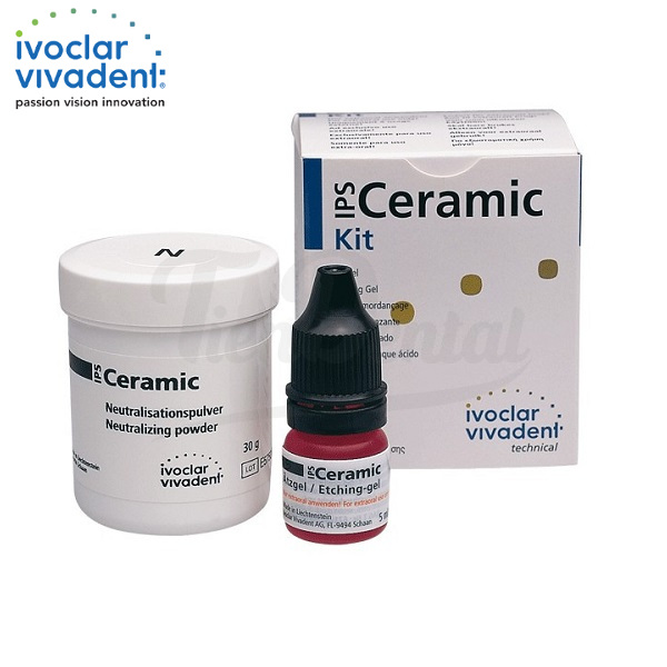 - Kit surtido: 1 botella de IPS Ceramic Etching Gel de 5ml, 30gramos de polvos neutralizantes y1 cuchara medidora.
