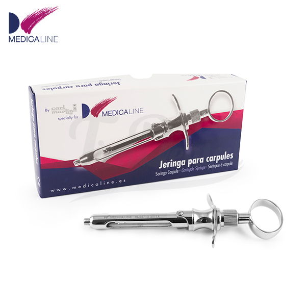 Jeringa Carpules Medicaline. Fabricada en acero inoxidable de alta calidad para la aplicación de anestesia en cartuchos de 1,8 ml.