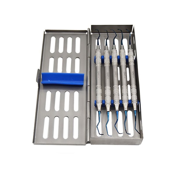Kit Curetas Gracey con Puntas de Titanio con Estuche GNZ fabricadas en acero inoxidable con puntas de Titanio. Instrumento para el tratamiento periodontal. Puntas activas y afiladas.