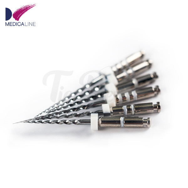 Limas CA rotatorias Retratamiento Medicaline. Estas limas rotatorias están fabricadas en aleación de Níquel-Titanio. Caja 6 unidades.