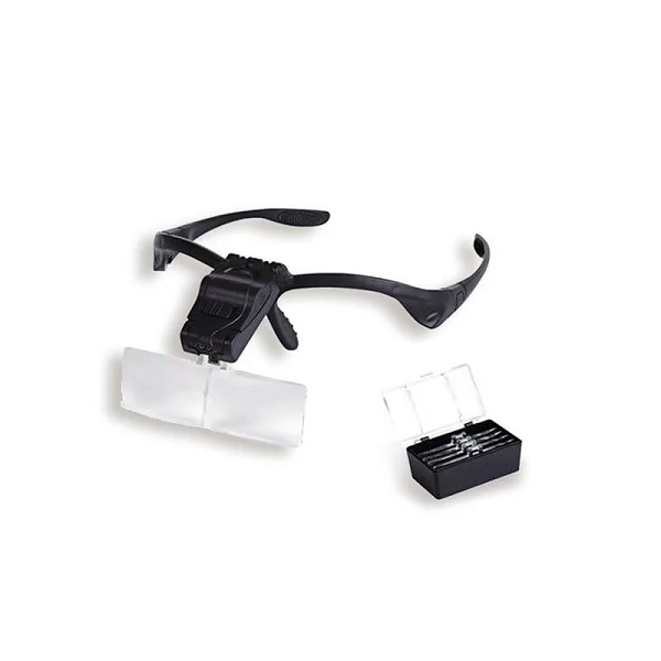 Lupa binocular con montura. Se puede trabajar de manera cómoda permitiendo una mejor visualización de todo tipo de trabajos.