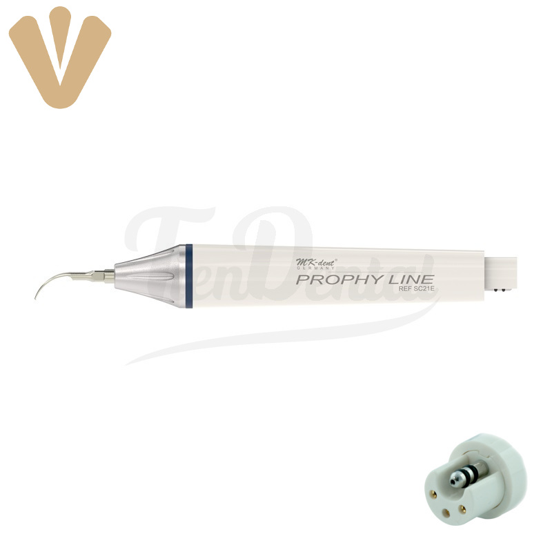 Es un mango de ultrasonidos con conexión y rosca compatible con EMS. Con un diseño ergonómico y elegante que, gracias a su punta metálica, lo hace más resistente a los golpes y le proporciona un equilibrio perfecto llevando el peso hacia la punta y evitando el tirón de la manguera.