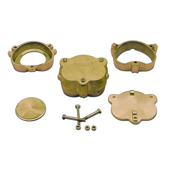 Mufla Grande De Tornillos Con Expulsor Mestra. Formada por tres piezas, con placa y orificio expulsor en su base.