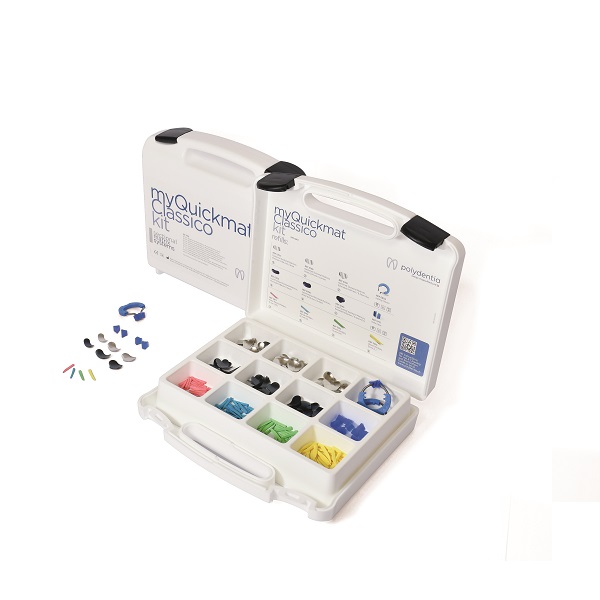 Este kit incluye myRing Classico de Polydentia, un anillo de matriz seccional clásico hecho de níquel titanio. Está reforzado para brindar una fuerza de separación ideal y suave en combinación con las cuñas interdentales de madera de arce incluidas.