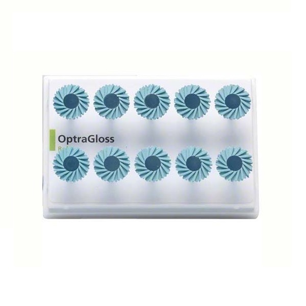 OptraGloss consta de un pulidor de diamante azul oscuro para el prepulido y un pulidor de diamante azul claro para el pulido de alto brillo. Para el pulido en un solo paso de las obturaciones de resina compuesta, sólo se necesita el pulidor de alto brillo. Los pulidores están disponibles en forma de "Copa", "Llama", "Lente" y ahora también "Rueda Espiral"