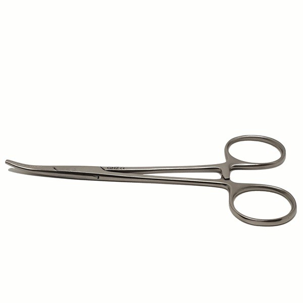 Pinza mosquito Curva GNZ fabricada en acero inoxidable de primera calidad. Su función principal es la de realizar clampeado o pinzado de vasos sanguíneos.