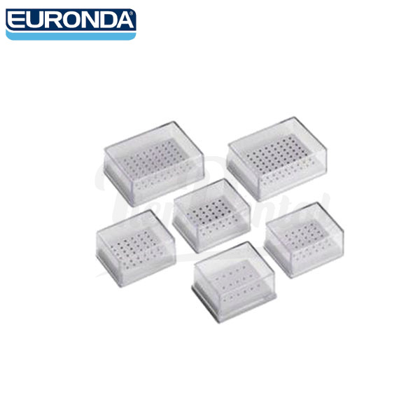 Porta fresas Euronda. Fresero con base esterilizable en autoclave para 36 fresas. Para fresas de turbina, para fresas de contra ángulo o fresero mixto. TAPA NO ESTERILIZABLE