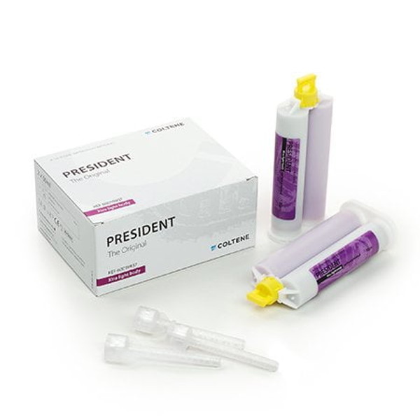 President Original XTRA Light Body 2 x 50 ml. Es un material de corrección muy fluido que se puede utilizar para reproducir incluso los detalles marginales, puesto que fluye hasta las zonas más estrechas sin gotear del diente.