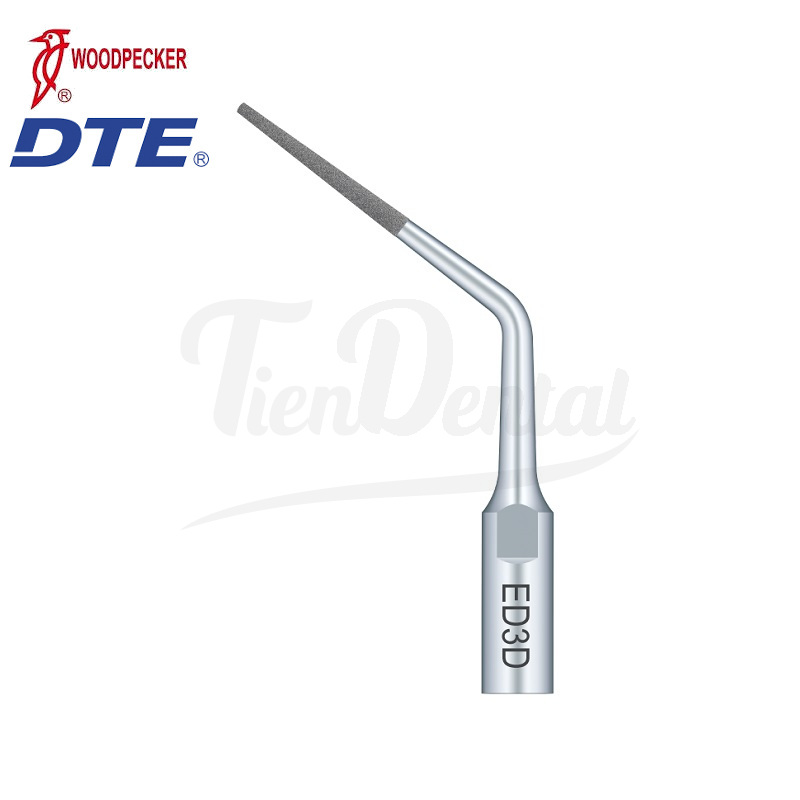 La punta para ultrasonidos ED3D, con superficie diamantada, se usa para agrandar el canal radicular para acceder a limas rotas en el interior del canal.