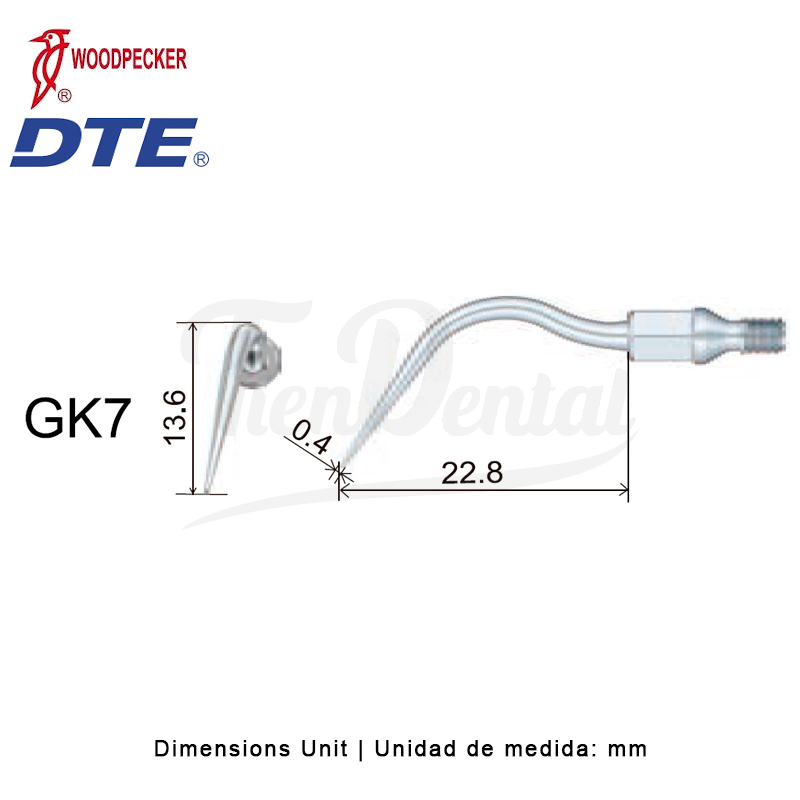 Punta para ultrasonidos GK7 para perio, compatible con KaVo Sonicflex 2000 y 2003.