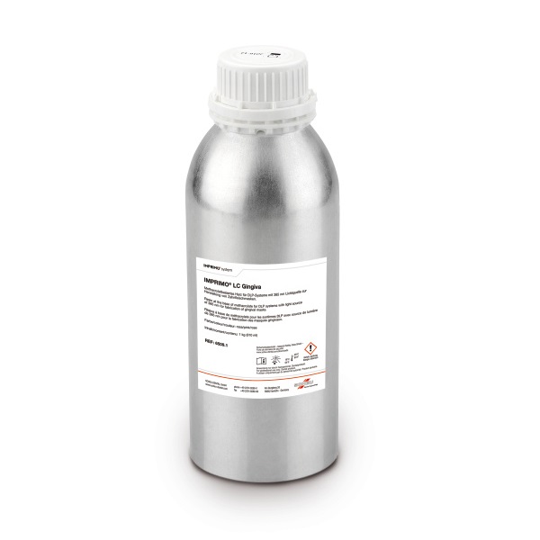 Resina Impresión 3D IMPRIMO LC Gingiva Rosa 1 Kg. Resina flexible fotopolimerizable para la fabricación de máscaras gingivales, rosa.