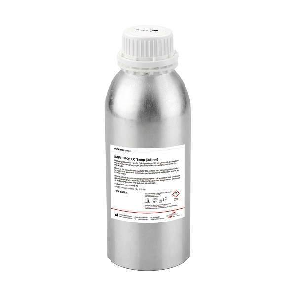 Resina Impresión 3D IMPRIMO LC Temp 1Kg. Resina fotopolimerizable a base de metacrilato asignada a la Clase IIa de la MDD para la fabricación de restauraciones temporales de dientes anteriores