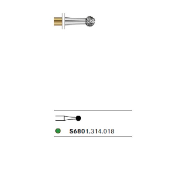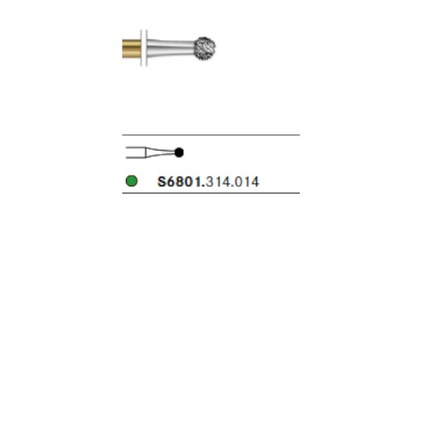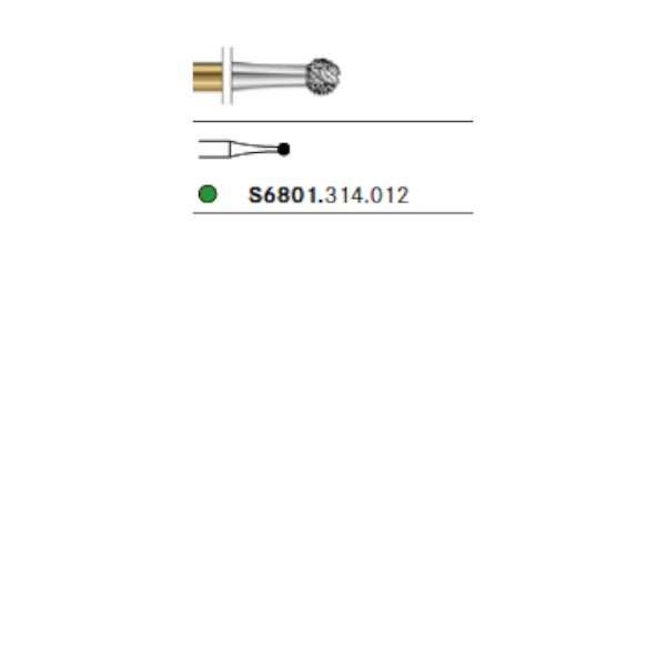 S6801.314 Fresa Diamante Turbina Redonda Anillo Verde 1 Unidad. Fresa de diamante con forma de bola. Para uso en turbina (FG). 1 Unidad