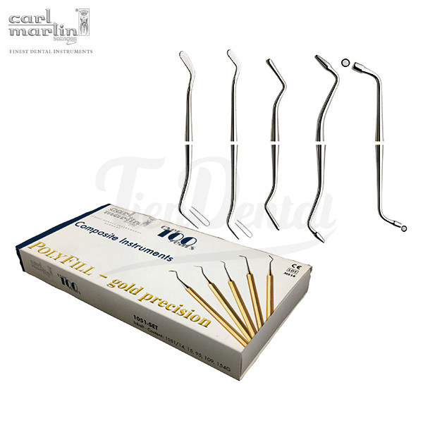 Set instrumentos Composite Polyfill 1051-SET5 Carl Martin. Material: Acero Inoxidable. Esterilizable en autoclave. 1051/14,15,95,109 y 154G.